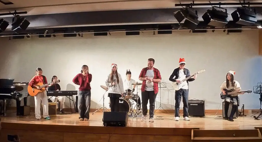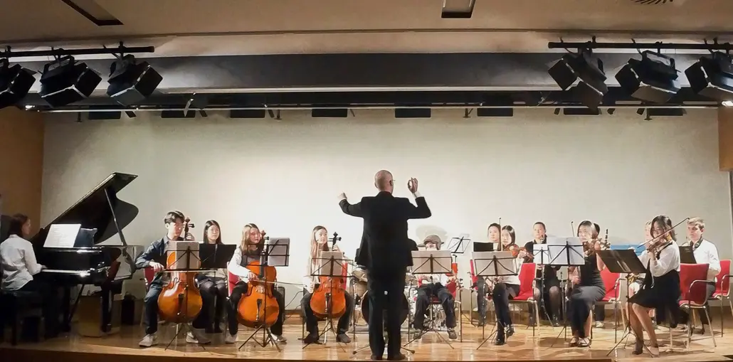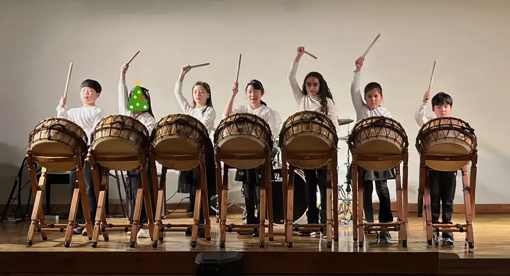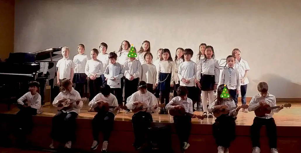 Um 18:30 Uhr begann das Konzert. Das Erste, was auf dem Programm stand, waren die Koreanischen Trommeln mit ,,Rhythm it is’’. Das haben Kinder aus der vierten und dritten Klasse getrommelt. Es war sehr schön und man sah, dass sie sich sehr viel Mühe gegeben haben. Sie trommelten das sehr professionell. Der zweite Programmpunkt war die dritte Klasse, die ,,Kinderaugen leuchten´´ sang. Dieses Lied sangen sie sehr schön mit viel Motivation und klaren, lauten, kräftigen und schönen Stimmen! Man merkte, dass viele Menschen erstaunt waren von dem Lied und der gesamten dritten Klasse. Als nächstes kamen der Grundschulchor und die Ukulelen dran. Der Grundschulchor und die Ukulelenkinder spielten und sangen dann gemeinsam „Süßer die Glocken nie klingen“. Danach gingen die Ukulelenkinder von der Bühne und der Grundschulchor sang allein „Leise rieselt der Schnee“. Dann sang die vierte Klasse „Seht, wie das kleine Licht“. Dieses Lied war sehr schön und hat viele eine Freude in die Gesichter gezaubert. Nach der vierten Klasse präsentierte der Chor von der Sekundarstufe „Night changes“. Das Lied an sich war sehr schön, aber auch alle im Chor hatten wunderbare Stimmen. Als nächstes kam das Orchester auf die Bühne und hat die Stücke „3 Minutes Nutcracker“, „Highland Cathedral“ und „Fame“ vorgestellt. Die Musik war sehr faszinierend und mit viel Stimmung in den Instrumenten. Jetzt war das Konzert schon beinahe zu Ende! Es waren nur noch die Bands der Sekundarstufe 1 und 2 übrig! Die Band der Sekundarstufe 1 brachte die Lieder „All I want for Christmas is you“ und „It’s my life“ auf die Bühne. Jeder im Publikum war sehr begeistert. Zu allerletzt kam die Band der Sekundarstufe 2 und spielte und sang drei Lieder mit schön klingenden Instrumenten. Das erste Lied war „In the street“, das zweite „Christmas without you“ und das letzte „Leave before you love me“. Da das Publikum so begeistert war, wollte es sogar eine Zugabe haben. Deshalb spielte die Band dann als Zugabe das Lied „Begging you“ und bezauberte damit das Publikum. Am Ende gab das gesamte Publikum einen großen Applaus an alle, die bei dem Weihnachtskonzert teilgenommen haben. Dieses Weihnachtskonzert war sehr schön und bezaubert. Es gab viele schöne Lieder dieses Jahr im Weihnachtskonzert.