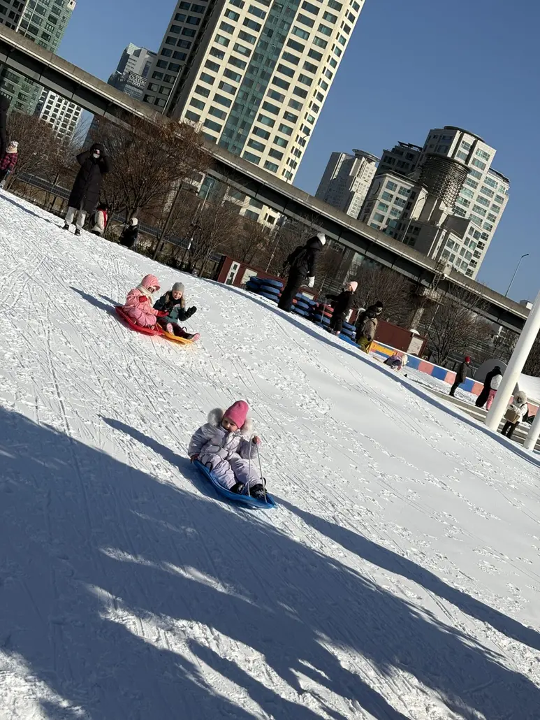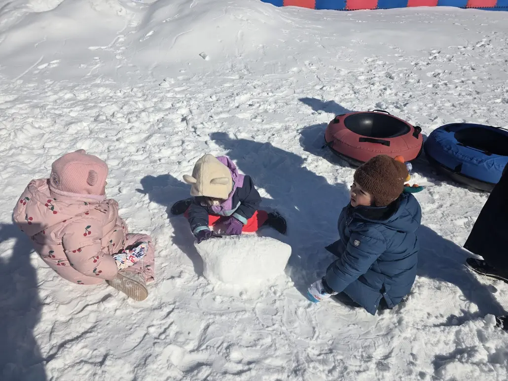Nach dem Frühstück waren wir ganz aufgeregt. Wir haben unsere warmen Sachen angezogen und sind zusammen losgefahren. Draußen war es kalt, aber wir hatten richtig Lust auf Schnee und Abenteuer. Am Hügel gab es große Reifen. Wir haben uns hineingesetzt und sind ganz schnell den Berg hinuntergerutscht. Das hat gekribbelt im Bauch und wir mussten laut lachen. Manche von uns wollten immer wieder fahren – rauf, runter, rauf, runter!
